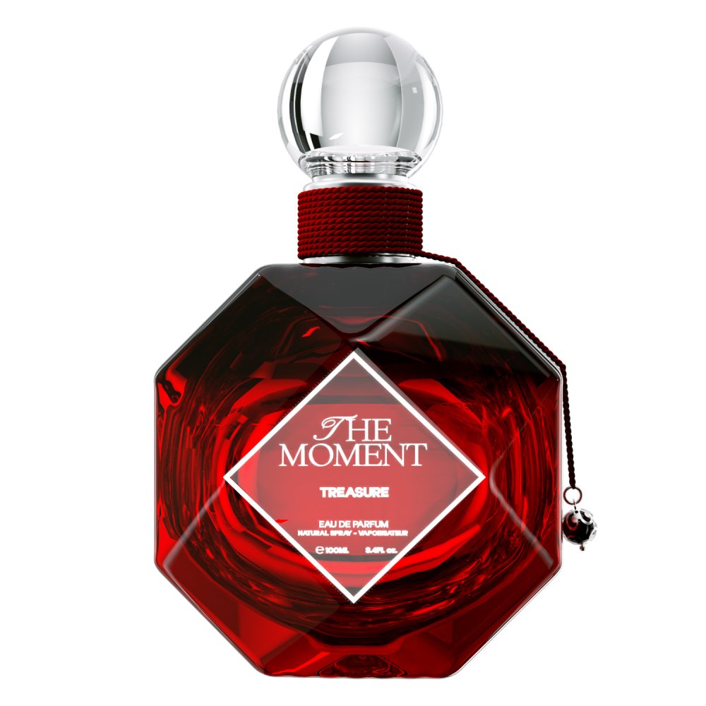 The Moment – Treasure Eau de Parfum Discover the allure of The Moment – Treasure, a fragrance that radiates elegance, warmth, and sophistication. It opens with a bright, juicy blend of peach, pear, and bergamot, creating a sparkling and inviting introduction. The heart reveals a luxurious floral bouquet of magnolia, rose, and violet, enriched with soft ambery notes for depth and elegance. Finally, a rich, indulgent base of musk, vanilla, patchouli, and caramel leaves a long-lasting, irresistible trail. The Moment – Treasure a scent that celebrates beauty, confidence, and unforgettable moments.